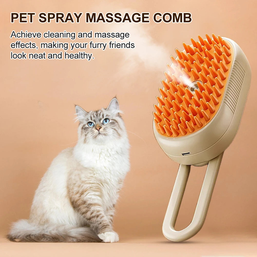 This clever, cruelty-free brush combines three powerful features into one adorable tool: 💨 Gentle Steam Spray to reduce static and calm the skin 🧼 Detangling Bristles to lift loose hair and dander 💆 Soothing Massage Head for a spa-like grooming experience your pet will actually enjoy
